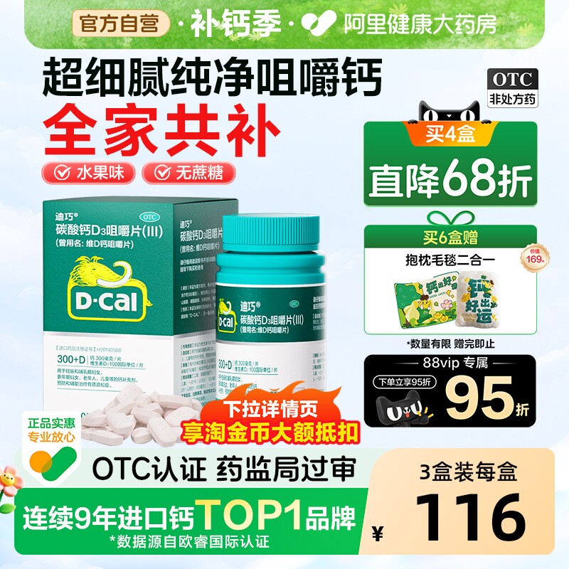 迪巧碳酸钙维生素d3咀嚼片成人钙片中老年人补钙孕妇钙片官方旗舰