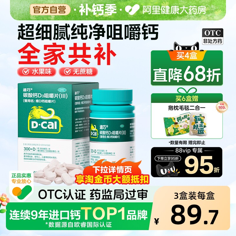 迪巧碳酸钙维生素d3咀嚼片成人钙片中老年人补钙孕妇钙片官方旗舰