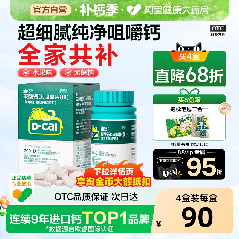 迪巧碳酸钙维生素d3咀嚼片成人钙片中老年人补钙孕妇钙片官方旗舰